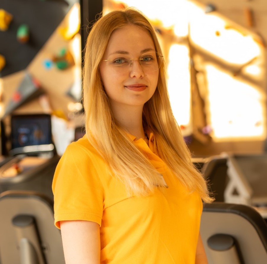 Die fachliche Leiterin der Physiotherapeutin mit viel Know-how und Faible für Fitnesstraining. Passt also perfekt.